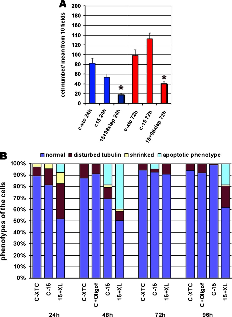 Xenopus LAP2β protein is the single isoform expressed in XTC cells. The protein localizes on heterochromatin clusters both at the nuclear envelope and inside a cell nucleus. The majority of XLAP2β fraction neither colocalizes with TPX2 protein during interphase nor can be immunoprecipitated with XLAP2β antibody. Knockdown of the XLAP2β protein expression in XTC cells by synthetic siRNA and plasmid encoded siRNA resulted in nuclear abnormalities including changes in shape of nuclei, abnormal chromatin structure, loss of nuclear envelope, mislocalization of integral membrane proteins of INM such as lamin B2, mislocalization of nucleoporins, and cell death. Based on timing of cell death, we suggest mechanism associated with nucleus reassembly or with entry into mitosis. This confirms that Xenopus LAP2 protein is essential for the maintenance of cell nucleus integrity and the process of its reassembly after mitosis.