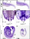 Fig 3. Expression of Anxa3 in the endothelial lineage is conserved across multiple species.(A,B) Whole-mount in situ hybridization analysis for vascular endothelial growth factor receptor 2 (VegfR2) and Anxa3b expression in Danio rerio embryos, 24 hours post fertilization (hpf). Close-up, lateral views of the tail regions are shown. Anxa3b transcripts are restricted to the developing dorsal aorta (DA), whereas VegfR2 is also expressed in the intersomitic vessels (isv). (C-F) Embryonic (E) day 8.25 mouse embryos were assayed for Anxa3 and the vascular marker PlexinD1 by whole-mount in situ hybridization (anterior views). Similar to PlexinD1, Anxa3 is observed in the paired dorsal aortae (da, arrows) and heart (h) region of the embryo. Anxa3 is absent in the extra-embryonic vessels of the yolk sac (ys) that are marked by PlexinD1 expression. This is highlighted in close-up views of ys from PlexinD1 and Anxa3 stained E8.25 embryos (D,F). (G,H) E9.25 heterozygous (+/-) and homozygous (-/-) VegfR2 embryos analyzed for Anxa3 expression by in situ hybridization (lateral views). Anxa3 is detected in the dorsal aorta (DA), intersomitic vessels (isv) and heart (h) region of VegfR2+/- embryos, while VegfR2-/- null embryos, which lack all blood vessels, displayed no observable vascular staining of Anxa3 (background staining is detected in the head and just outside the heart region). |