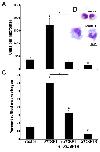 Fig. 6. The rXlCSF1R abrogates the rXlCSF1-mediated tadpolemacrophage recruitment and differentiation. (A) Tadpoles were injected with vector control, 250ng of rXlCSF1, 1000ng of rXlCSF1R or a combination of rXlCSF1 (250ng) and rXlCSF1R (10000ng). After 24hrs peritoneal phagocytes were lavaged and enumerated. Results are means ± SEM, N=6 and the (*) above lines denotes significant difference between treatment groups indicated by the lines, P<0.05. (B) Morphological analysis of Giemsa-stained vector-control and rXlCSF1R derived cultures. Scale bar = 10mm. (C) Cultures from (A) were Giemsa-stained, enumerated for the presence of morphologically differentiated macrophages as exemplified in (B) by the rXlCSF1R-derived cells. Results are expressed as percent means ± SEM from ten random fields of view. The (*) above lines denotes significant difference between treatment groups indicated by the lines, P<0.05.