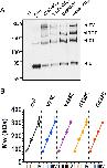 Fig 6. Oligomeric states of ASIC1a trimeric and tetrameric fusion proteins at the surface of cells expressing functional ASIC1a.A-B: Anti-ASIC1a western blot of surface biotinylated fractions of oocytes, treated with vehicle or with BMOE (0.5 or 2 mM) before lysis, expressing either ASIC1a wt or G433C (A) or 3ASICFP (3xFP) or 4ASICFP (4xFP) (B). C: Anti-ASIC1a western blot of ASIC1a in cell-surface biotinylated fractions of CHO cells expressing monomeric ASIC1a wt, or G433C mutant, 3xFP, or 4xFP fusion proteins with or without treatment with BMOE before lysis. I, II, III, IV have the same meaning as in previous figures. D: Relative intensities (mean ±SD) of each of the 4 bands (I to IV) ASIC1a oligomers from cell-surface biotinylated fractions of Xenopus oocytes and CHO cells expressing ASIC1a (wt, n = 17), or G433C (433, n = 17) monomeric forms, or 3xFP (n = 8), or 4xFP (n = 8) fusion proteins treated with either vehicle or 0.5 mM BMOE. Symbol * denotes p<0.01 for comparison between condition -BMOE and +BMOE, ❖ p<0.01 for the indicated comparison. |