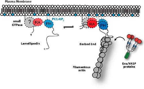 Krause, Lamellipodin, an Ena/VASP ligand, is implicated in the regulation of lamellipodial dynamics. 2004, Pubmed