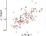 Figure 4. Direct interaction of the Dvl C-terminus and PDZ domain.(A) Overlap of 1H-15N HSQC spectra of 15N-labeled PDZ domain without (blue) and with the unlabeled peptide (SEFFVDVM) derived from the extreme C-terminus of Dvl. Free: blue; final: red; ratio of peptide:protein = 20:1. (B) Overlap of 1H-15N HSQC spectra of 15N-labeled PDZ domain without (blue) and with unlabeled peptide (QDVSVSNYVL) derived from the C-terminus of Drosophila Dsh (Dsh-C). Blue: free; red: final; ratio of peptide:protein = 20:1.DOI: http://dx.doi.org/10.7554/eLife.08142.006 |