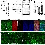 Fig. 4. NF2 depletion increases the Wnt/β-catenin signaling activity. Dual luciferase assay comparing the activities of TOP-flash reporter in cMO- and NF2 MO-injected embryos. cMO or NF2 MOs together dual luciferase reporter DNA were injected into two dorsal animal cells at the 8-cell stage, embryos were lysed at stage 15 for the detection of luciferase activities. (B) Western blotting analysis for NF2, β-catenin in the neural plate explants from cMO- or NF2 MOs-injected embryos. cMO or NF2 MOs were injected into two dorsal animal cells at the 8-cell stage and neural plates were dissected at stage 15 and subjected to western blotting analysis. GAPDH was used a loading control. (C, D) Comparison of the levels of nuclear β-catenin in control and NF2 MO-injected neural plate of Xenopus embryo at stage 15 side by side through indirect immunofluorescence analysis, indicating that the levels of nuclear β-catenin in NF2 depleted cells were higher than those in control cells. Photographs shown in panel C were acquired using a 20 à lens. The boxed area in panel C was digitally enlarged 4 times and displayed in panel (D). RLDx was used as a lineage tracer. The nuclei were counter stained with DAPI. (E) Quantitative comparison of the signal intensity of nuclear β-catenin in the neural epithelial cells in the uninjected and NF2 MOs-injected side of neural plate. p-Value was obtained through the student t-test.
