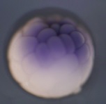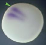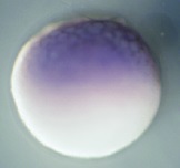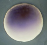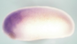fbxo8 ( F-box protein 8) gene expression in Xenopus laevis embryo, assayed via in situ hybridization, NF stage 8, lateral view, animal up. |