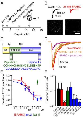 in vitro synaptic development is indicated. (B) Effect of SPARC on evoked