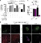 Figure 1. MiR-449 affects actin network remodelling and multiciliogenesis in HAECs.(aâc) Effect of a treatment by control antagomiR (CTR-Neg), anti-miR-449a/b (Antago-449) and miR-449::Notch1 protector (PO-Notch1) on differentiating HAECs. (a) Staining for F-actin (a1,5,9), ezrin (a2,6,10) and acetylated tubulin (a3,7,11), at LC stage. (b) The histogram indicates the average percentage of MCCs (in magenta) and apical ezrin-positive (in green) cell number relative to control (means±s.d. from nine and three donors for MCC and ezrin quantifications, respectively. ***P<0.001, **P<0.01; Student's t-test). (c) Immunostaining of focal adhesions protein Paxillin (in green), F-actin (in red) and nuclei (in blue) in A549 epithelial cells transfected for 72âh with control miRNA (miR-Neg), miR-449a or miR-Neg plus 10âμM DAPT. (d) Ratio of focal adhesion number per cell, normalized to control (n=5 fields in three independent experiments; ***P<0.001; Student's t-test). (e) Effect of miR-449 overexpression and DAPT (10âμM) on ERM phosphorylation in proliferating HAECs. Phosphorylated protein levels were normalized with non-phosphorylated ERM and with an antibody against HSP60 as a loading control. Normalized fold changes are indicated on the corresponding bands. Experiments were representative of three donors. (f) Effect of PO-Notch1 and DAPT (10âμM) in differentiating HAECs at LC stage on miR-449 expression, normalized with RNU44. (g) Real-time RTâPCR of HES1 transcripts in control, DAPT (10âμM, 48âh)-treated or miR-449-overexpressing proliferating HAECs. Transcript levels of HES1 were normalized against UBC transcript as an internal control. (f,g) Data represent the mean and s.d. of three independent experiments (***P<0.001, **P<0.01; Student's t-test). |