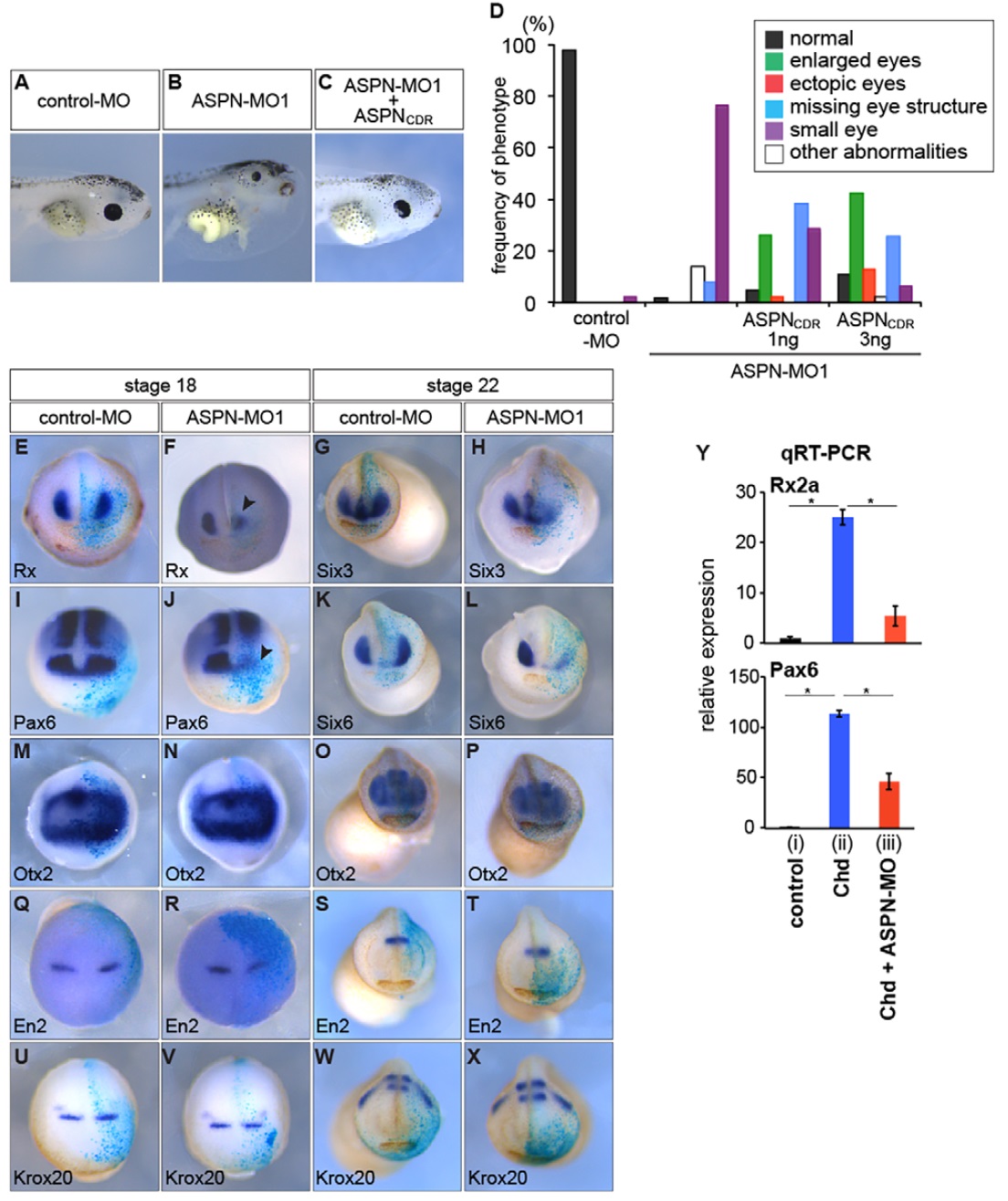 mRNA (control: C), 1 ng ASPN mRNA (D), 1 ng ASPN+3 ng