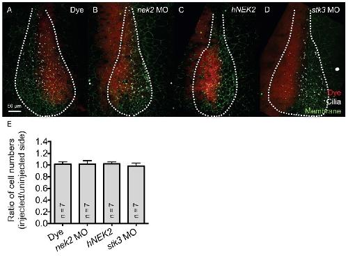 numbers in the LRO. 2-cell Xenopus embryos were injected unilaterally with dye (A), nek2