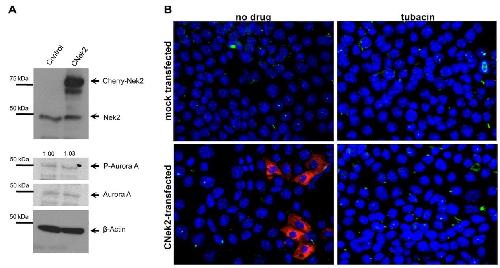 Aurora A phosphorylation. (A) Western blot showing levels of Nek2, Aurora A,