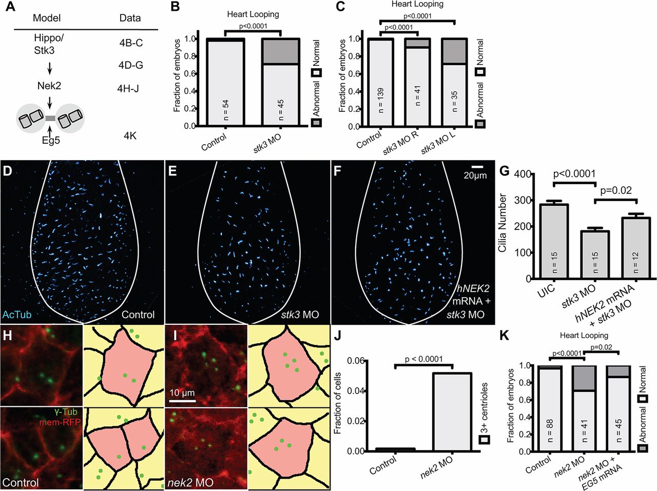 injection of kinase-dead hNEK2 is unable to rescue. (F) Injection of hSTK3 mRNA is able to