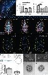 Fig. 2. Both overexpression and knockdown of nek2 lead to loss of cilia numbers and motility at the LRO. (A) z-projection of control LRO during live imaging. A motile cilium is highlighted in cyan; an immotile cilium is highlighted in magenta. (B) There is a reduction of cilia from LROs of nek2 morphants and overexpressors. (C) The percent of motile cilia is significantly reduced in both nek2 morphants and overexpressors. (D) Montage of images of motile and immotile cilia over time from A. (E-G) Maps of the distribution of motile and immotile cilia at the Xenopus LRO. Despite the loss of motile cilia, the distribution of motile cilia is not changed in nek2 morphants and overexpressors. Each map is a composite of the first eight LROs analyzed. (H-J) Acetylated tubulin stainings of LROs showing the loss of cilia in nek2 morphants and overexpressors. (K) Nek2 expression levels affect epidermal cilia. The side of a Xenopus embryo injected with either hNEK2 mRNA or nek2 MO glides significantly less than the control side, suggesting a loss of cilia motility. (L) SEM (i-ii) and TEM (iii-iv) images of epidermal cilia from control (i,iii) and nek2 morphant (ii,iv) embryos. Error bars are s.e.m. P-values were calculated by Student's t-test for B,C. For K, P-values were calculated by paired t-test of distance travelled between the injected and uninjected sides of the embryo. |