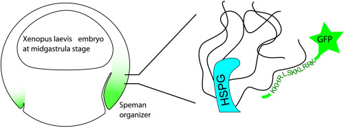 Affinity of the heparin binding motif of Noggin1 to heparan sulfate and its visualization in the embryonic tissues.