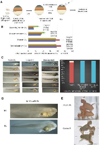Highly efficient gene knockout by injection of TALEN mRNAs into oocytes and host transfer in Xenopus laevis.