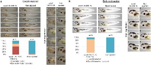 Fig 2. Phenotypes of embryos that were injected with pax6 TALEN mRNAs.