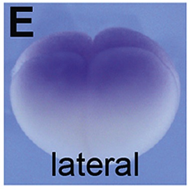bcar3 (breast cancer anti-estrogen resistance 3) gene expression in Xenopus laevis embryo, assayed via in situ hybridization, NF stage 3, lateral view, animal up. |