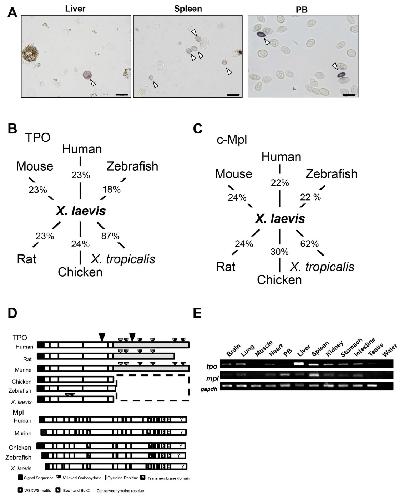Kakeda, Role of the thrombopoietin (TPO)/Mpl system: c-Mpl-like molecule/TPO signaling enhances early hematopoiesis in Xenopus laevis. 2002, Pubmed , Xenbase