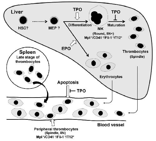 Nomura, Cellular localization of thrombopoietin mRNA in the liver by in situ hybridization. 1997, Pubmed