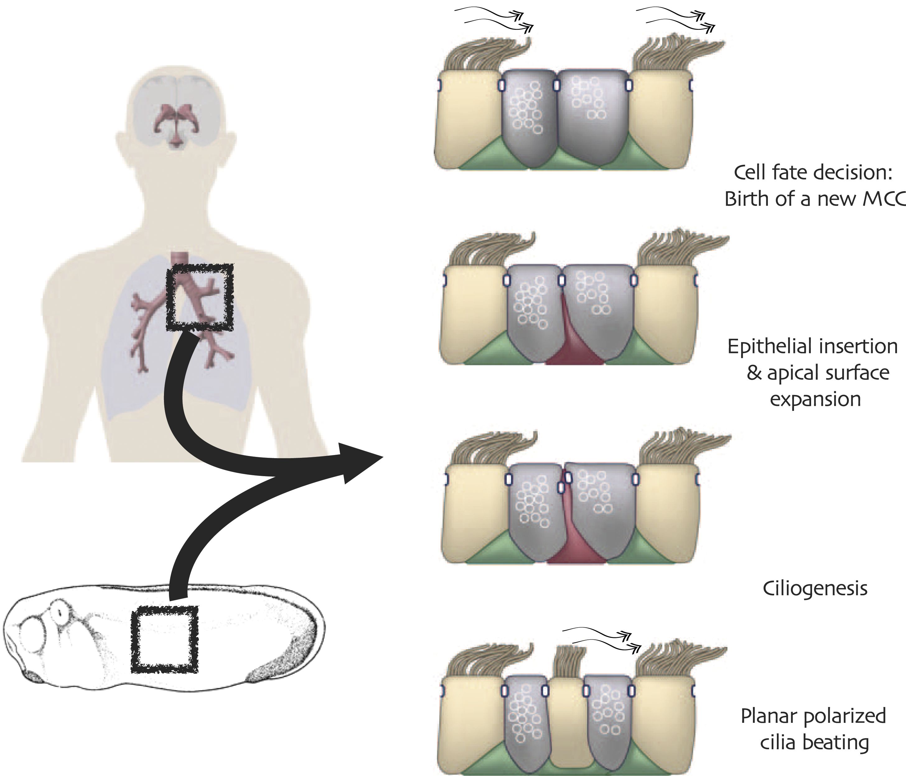 Figure 1. Conserved cell behaviors during multi-ciliated cell development in mammalian airways and Xenopus epidermis. |