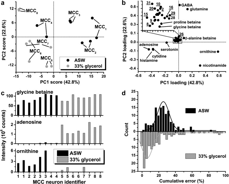 for assessing chemical changes upon neuron culturing. Key: MCC1–4 = freshly isolated and MCC5–8 = glycerol-stabilized MCC cell extracts.