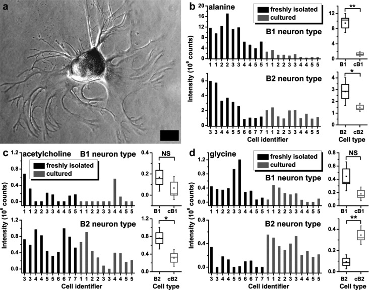 single-cell culturing. (a) In culture, B1 and B2 neurons typically