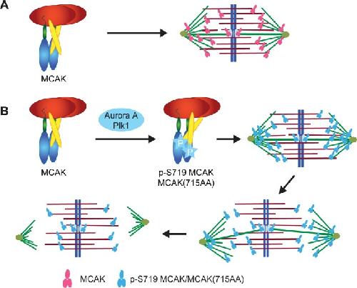 Zhang, Aurora A phosphorylates MCAK to control ran-dependent spindle bipolarity. 2008, Pubmed , Xenbase