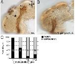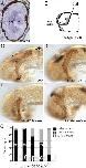 Figure 4- RGC axons fail to navigate the midâdiencephalic turn in the presence of the actin stabilizer, jasplakinolide. A,B: X. laevis brains were exposed to control or jasplakinolide solutions from stage 33/34 to stage 40. C: Graph showing the percentage of embryos with optic tracts that reached the optic tectum (tectum), or failed to navigate the turn in the diencephalon (diencephalon). Number of brains analyzed for each condition indicated within the bars.