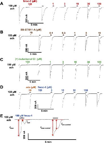 Bertrand, Positive allosteric modulation of the alpha7 nicotinic acetylcholine receptor: ligand interactions with distinct binding sites and evidence for a prominent role of the M2-M3 segment. 2008, Pubmed , Xenbase