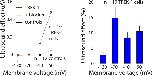 Figure 10. The effects of US on NaV1.5 current.Average membrane current of a cell expressing NaV1.5 α and 81 subunits in response to 20 ms voltage steps of a particular value (see inset). We alternated 4 noUS and 3 US conditions; average noUS (black) or US (blue) current is shown. Pulsed ultrasound (10 MHz, 1 kHz pulse repetition frequency, 50 us pulse duration, ISPTA = 0.3 W/cm2) was applied throughout the US condition (see Methods). The light traces show corresponding currents following the introduction of ranolazine (500 μM), a NaV1.5 channel blocker, into the bath. |