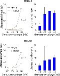 Figure 5. Ultrasound-mediated effects at elevated extracellular K+ concentration.Same format as in Fig. 4 left, for 5 TREK-1 cells recorded in ND96 with a 20 mM K+ concentration. |