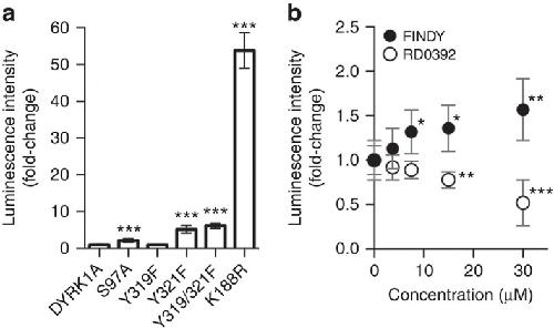 Sonamoto, Identification of a DYRK1A Inhibitor that Induces Degradation of the Target Kinase using Co-chaperone CDC37 fused with Luciferase nanoKAZ. 2015, Pubmed