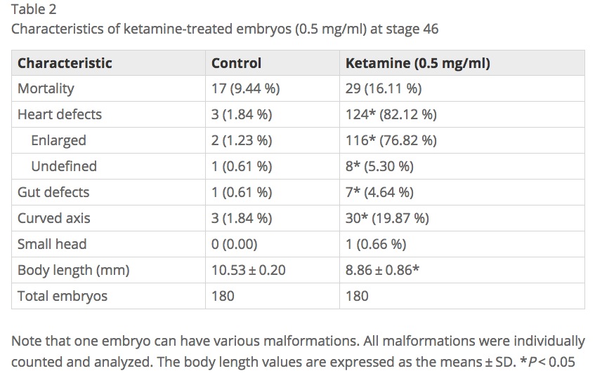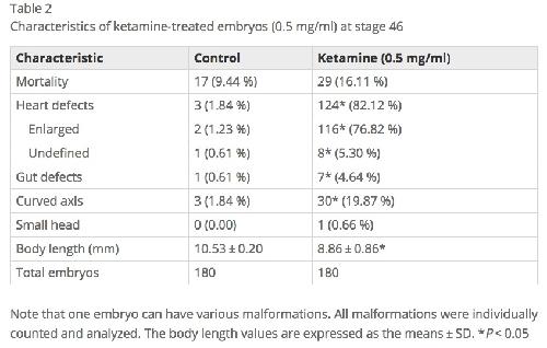 Table 2. Characteristics of ketamine-treated embryos (0.5 mg/ml) at stage 46.
