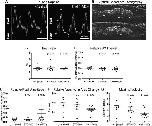 Figure 10. Morpholino-mediated knockdown of Celf1 in Xenopus laevis leads to cardiac dysfunction. Uninjected (n = 8), STD-MO-injected (n = 9), and Celf1-MOs-injected (n = 13) embryos were collected at stage 46, immobilized in methylcellulose gel, and imaged by optical coherence tomography (OCT). Doppler signal was measured at the level of the right aortic branch, and both Doppler (not shown) and pulsed Doppler traces (A) were generated for live, beating hearts. Fwd, forward flow (positive Doppler shift); Rev, reverse flow (negative Doppler shift); A, atrial peak; V, ventricular peak; *, regurgitation; horizontal line indicates zero-shift. B: Video-speed OCT movies were recorded to evaluate ventricular contraction. A, Atrium; O, OFT; V, ventricle. CâG: Contractile parameters were measured and compared with uninjected controls using a one-tailed Mann-Whitney U-test. Bars indicate mean ± standard error of the mean. Two control embryos that exhibited a single peak on pulsed Doppler were excluded from the analyses in panels (D) and (E). |