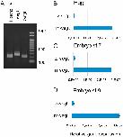 Fig. 4. vegt mRNA isoforms of the X. laevis unfertilized egg and embryos. (A) vegt mRNA isoforms of the unfertilized egg amplified by RT-PCR and separated in an agarose gel. (BâD) Relative expression of mvegt and zvegt by RT-qPCR and δδCt analysis normalized by histone H4 expression. (B) Unfertilized egg. (C) Embryo st 7. (D) Early st 9 embryo. The ratios of zvegt mRNA to mvegt mRNA were 2.8% in B, 4.0% in C, and 5.2% in D. The efficiency of mvegt and zvegt primer sets is almost the same. The results are the means of three independent experiments.