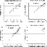 Figure 5. Correlation between somatic mutation rates determined by RFLP and amplicon sequencing analyses. The results of RE or RGEN-RFLP analysis were plotted against those of amplicon sequencing from tyr (N = 37)- and slc45a2 (N = 30)-disrupted animals with various phenotypes. In the case of slc45a2, both RGEN-RFLP and RE-digested RFLP were analyzed in parallel. Somatic mutation rates estimated by RFLP analyses exhibited a strong correlation with those determined by amplicon sequencing. In the case of ltk, although we could not statistically evaluate the association because of biased sampling (half and full phenotypes, N = 14), the results also indicate a positive association. R2 is the square of the Pearson correlation coefficient. |