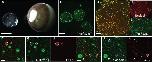 Fig. 2. Isolated Xenopus nuclei (GVs) can be used for combinatorial identification of nuclear particles with thioflavin T and particle specific antibodies. (A) Manual removal of a GV from a stage VI oocyte. Scale bar: 500 µm. (B) Isolated GVs demonstrate amyloid containing particles seconds after thio-T staining. Scale bar: 200 µm. (C) Overlay of nucleolin immunofluorescence (red, D) and thio-T (green, E) staining of an isolated GV. Scale bar: 100 µm. (F) Overlay of images (G, green) stained with thio-T and (H, red) coilin immunofluorescence. A pearl particle is circled with a solid line, a histone locus body circled with a dashed line. Scale bar: 5 µm. (I) Overlay of panels (J, green) stained with thio-T and (K, red) SC35 immunofluorescence. Dashed lines indicate some thio-T-positive SC35-negative particles, dotted lines indicate a thio-T- and SC35-positive particle. The arrowhead points to a nucleolus in I-K. Scale bars: 5 µm.