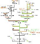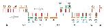 Fig. 3. Genomic organization of X. tropicalis mucins. Genomic region from assembly version 7, accession KB021653.1, region 53,600,000–57,000,000 is shown. Genes are shown for Muc5 paralogs (green) and Muc2 paralogs (orange). Naming of genes was based on their location from right to left. Location of VWD domains, PTS domains, and CysD domains (red, blue, and green vertical bars, respectively) are based on the analysis of the genomic sequence with genewise and an in-house Perl script. Genes where a CysD domain is predicted are indicated with cyan triangles. |