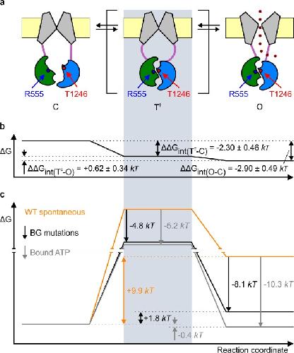 Obligate coupling of CFTR pore opening to tight nucleotide-binding domain dimerization.