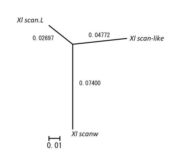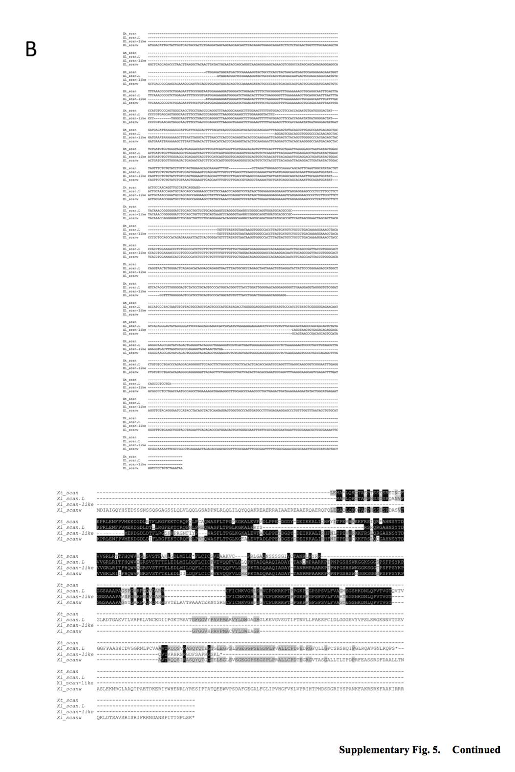 Supplementary Fig. 6. Phylogenetic analysis of three scan subfamily genes in X. laevis. A phylogenetic tree of X. laevis scan.L, scan-like, and scanw was constructed using the neighbor joining (NJ) method based on pairwise distance. |