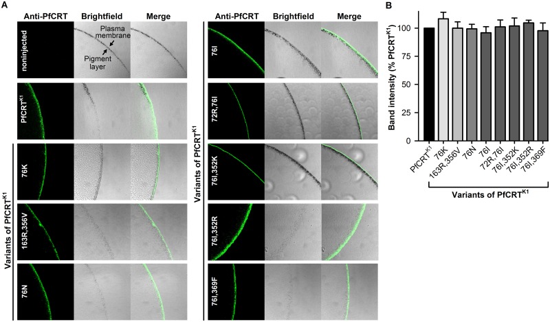 Pulcini, Mutations in the Plasmodium falciparum chloroquine resistance transporter, PfCRT, enlarge the parasite's food vacuole and alter drug sensitivities. 2015, Pubmed , Xenbase