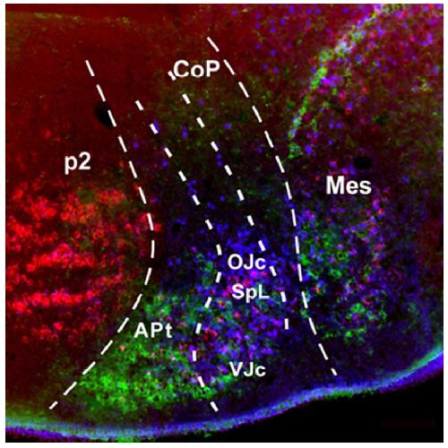Gene expression analysis of developing cell groups in the pretectal region of Xenopus laevis.