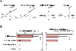Fig. 5. Assessment of the direct involvement of THIK-1 in cell shrinkage and potassium leakage during apoptosis. (A) Immunoblot analysis of human THIK-1 proteins downregulated by RNA interference. Cell extracts from HeLa stable transfectants HeLa/Control and HeLa/THIK1-KD carrying either pSilencer or pSi-shTHIK1 were prepared and analyzed by SDS-PAGE, followed by immunoblotting with anti-human THIK-1 and anti-actin antibodies. The numbers indicate the ratio of endogenous THIK-1 between two stable lines after calculating the amounts of THIK-1 relative to actin using an image analyzer. (B) The effect of THIK-1 knockdown on cell shrinkage in apoptotic induction. Stable transfectants carrying plasmids, either pSilencer (panel a) or pSi-shTHIK1 (panel b), in combination with pCAGGS-EGFP/IRES-Neo, were automatically measured for morphological changes in the presence (+) or absence (â) of anti-Fas antibody. The extent of cell contraction is summarized in panel c. Data are representative of two independent experiments and presented as the means and standard deviations of samples counted from ten different fields in the plate. Statistical analysis was performed by Student's t-test. Asterisks show p < 0.05. (C) Conceptual structure of the biologically coupled field effect transistor (bioFET). Schematic illustration for measurement of the surface potential of the bioFET is shown. A shift of the threshold voltage VT can be determined from the gate voltage (VG)-drain current (ID) characteristics in a phosphate buffer solution [25 mM Na2HPO4 and 25 mM KH2PO4, (pH 6.86)]. (D) Photograph of the fabricated FET chip. Four N-channel depletion mode bioFETs were prepared in a 5 mm à 5 mm chip and mounted on a flexible polyimide film with patterned copper electrodes and wire-bonded. Measurements were performed by use of the two kinds of FETs: the trans-bioFET for stable transfectants and the cont-bioFET for parental HeLa cells. (E) Monitoring of the potassium leakage in dying cells using the bioFET. Stable transfectants HeLa/Control and HeLa/THIK1-KD carrying plasmids pSilencer (blue line) or pSi-shTHIK1 (red line) were placed in trans-bioFETs, and their surface potential changes were monitored during anti-Fas antibody treatment. Parental HeLa cells (moss-green line) placed in the cont-bioFET were also monitored with apoptotic stimulation. The electrical potentials were determined using a real-time semiconductor analyzer. Each arrow indicates a maximum point of the surface potential in transfectants and parental HeLa cells. The data are representative of three independent experiments. (F) A summary of the monitoring data related to the potassium leakage. Times to reach a maximum point of the surface potential in cell samples are indicated as the means and standard deviations from three independent experiments. Statistical validation was performed by Student's t-test. A double asterisk indicates p < 0.01 and n.s. is not significant. |