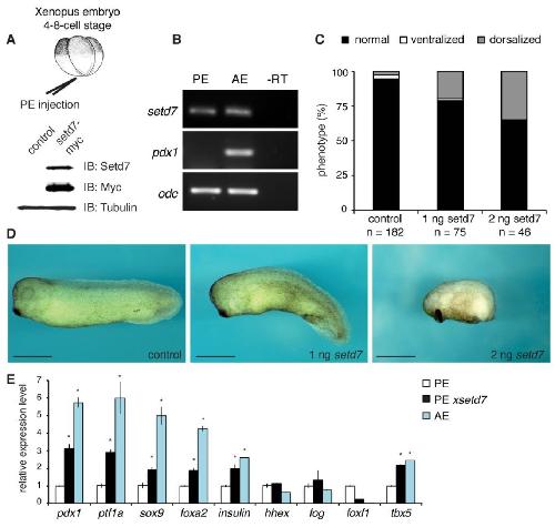 with setd7 mRNA (1 ng), uninjected PE and AE. Embryos were injected into PE region at 2-4 cell