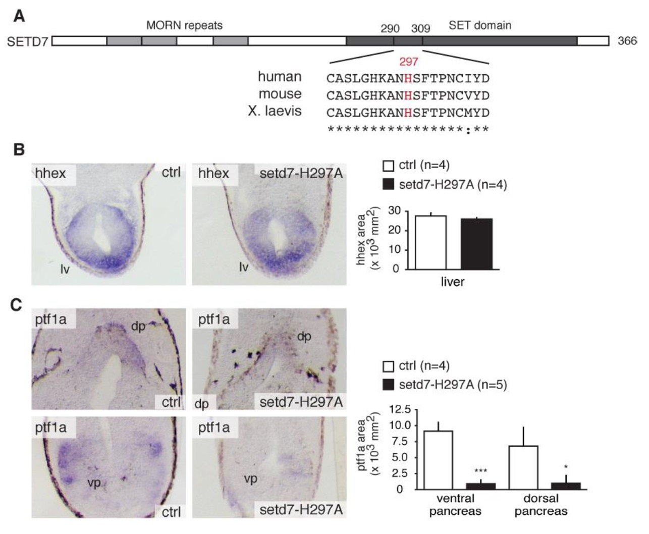 Fig. 4. Setd7-H297A histone methyltransferase mutant lacks pancreatic