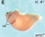 adjacent to the lip. In D, hemisected st. 14 embryo shows expression of setd7 in the anterior
