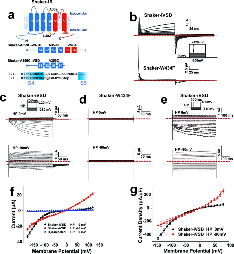 The isolated voltage sensing domain of the Shaker potassium channel forms a voltage-gated cation channel.