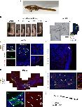 Figure 4. Lineage tracing in adult newt limb regeneration by tissue transplantation.(a,b) Tracing of skin cells by allograft of mCherry+ skin (n=3). (a) mCherry+ cells were distributed along the epidermis and dermis, as well as around the cartilage in a regenerating part of the limb (day 40). c, cartilage. Asterisk, mucous gland. Scale bar, 200 μm. (b) In a growing tip of new digit, mCherry was sometimes observed in chondrocytes (arrows) in the cartilage and in interstitial cells surrounding the cartilage. Epi: epidermis. Scale bars, 100 μm. (c,d) Tracing of epidermal cells by transplantation of mCherry+ ectoderm at embryonic stage (n=2). mCherry was observed in epidermal cells such as those in multilayered epithelium (arrowheads in c) and mucous glands (asterisks in d), as well as in interstitial cells around the cartilage (arrowheads in d) in a regenerating part of the limb (day 148). Scale bars, 200 μm. (e) Tracing of bone cells by allograft of mCherry+ bone (n=4). mCherry was observed in chondrocytes (arrows) in new cartilage of a regenerating limb (day 81). Asterisk: mucous gland. Scale bar, 100 μm. (f) Tracing of muscle cells by allograft of mCherry+ muscle (n=3). mCherry was observed in muscle fibres in a regenerating part of the limb (day 81). MHC, myosin heavy chain immunoreactivity. Scale bar, 50 μm. (g) Tracing of Schwann cells by implantation of a fragment of mCherry+ nerve (n=3). mCherry was observed in Schwann cells along regenerated nerve fibres in a regenerating part of the limb (day 133). Arrowhead: myelin sheath covering a regenerated nerve fibre; a-tubulin, acetylated tubulin immunoreactivity. Scale bar, 20 μm. Blue: nuclei stained by To-pro-3 (b–d,f,g) and DAPI (4,6-diamidino-2-phenylindole) (e). (h) Summary. The skin, bone, muscle and nerve (Schwann cell) regenerated themselves. Exceptionally, dermis contributed to new bone/cartilage. |