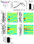 Figure 2. The spatial pattern of synaptic input is determined by recording RGC- and HB-evoked synaptic field potentials at equidistant points along the distal-proximal neuropil.(A) Simplified schematic of the tectal neuropil showing RGC (distal) and HB (proximal) axonal inputs onto tectal neuron dendrites. RGC and HB-evoked synaptic field potentials are recorded every 10 µm along the distal-proximal axis of the neuropil. (B) An example of RGC-evoked FPs recorded from across the distal-proximal axis of a single optic tectum. (C) Corresponding current-source density (CSD) profile derived using spatial differentiation grid of 20 µm. (D) Corresponding image plot generated using same CSD data. Red indicates current sink, blue indicates current source. Main RGC-evoked sink is localized at the distal end of the neuropil (circled primary sink). A small, more proximal sink is also commonly observed. Note that the main primary sink is followed by the recurrent portion of the response (circled secondary sink), which consistently appears in the same region as the primary sink. L: lateral, M: medial.DOI: http://dx.doi.org/10.7554/eLife.20502.003Figure 2—figure supplement 1. Spatial pattern of synaptic input is determined by recording RGC- and HB-evoked synaptic field potentials at equidistant points along the distal-proximal neuropil, an example of an HB-evoked response.(A) Simplified schematic of the tectal neuropil showing RGC (distal) and HB (proximal) axonal inputs onto tectal neuron dendrites. RGC and HB-evoked synaptic field potentials are recorded every 10 µm along the distal-proximal axis of the neuropil. (B) An example of HB-evoked FPs recorded from across the distal-proximal axis of a single optic tectum. (C) Corresponding current-source density (CSD) profile derived using spatial differentiation grid of 20 µm. (D) Corresponding image plot generated using same CSD data. Red indicates current sink, blue indicates current source. Main HB-evoked sink is localized to the proximal region of the laminar axis of the neuropil (circled primary sink). Note that, as with the RGC-evoked response, the main primary sink is followed by the recurrent portion of the response (circled secondary sink), which consistently appears in the same region as the primary sink. L: lateral, M: medial.DOI: http://dx.doi.org/10.7554/eLife.20502.004 |