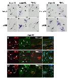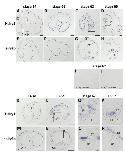 Localization of Hairy1 and Hairy2b mRNAs in the X. laevis intestine during natural and T3-induced metamorphosis. Cross-sections of the intestine from animals at premetamorphic stage 54 (A, E), metamorphic climax stages 61 (B, F) and 62 (C, G, I, J, O, Q), and the end of metamorphosis (stage 66; D, H), and stage-54 tadpoles treated with 10 nM T3 for 3 days (K, M) and 5 days (N, L, P, R) were hybridized with antisense Hairy1 (A-D, K, L, O, P), Hairy2b (E-H, M, N, Q, R), or their sense probes (I, J). Dark blue deposits indicate the sites of probe binding. Light or dark brown pigments in some pictures are melanin. Hairy1 is expressed in the epithelium (Ep), whereas Hairy2b is expressed in the connective tissue (CT). The boxed area in panel A is magnified to show the localization of Hairy1 expression in the larval Ep (panel A, inset). The boxed areas in panels C, G, L, N are magnified and shown in panels O, Q, P, R, respectively. The dashed-lines indicate the boundary of Ep and CT. Scale barsâ=â100 μm (A-L), 20 μm (inset of A, O-R). Abbreviation: CT, connective tissue, Ep, epithelium.