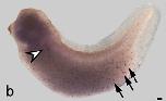 cfap157 cDNA probe at stage 16 (a, dorsal explant; aâ², transverse section along plane shown in a; arrow, gastrocoel roof plate), stage 35 (b; arrowhead,