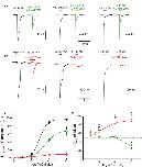 IACh recordings evoked by applying, successively, ACh at increasing concentrations (10, 100 μM, and 1 mM) either alone (black traces) or co-applied with 2 mM DMA either directly (A1, green recordings) or after being pre-applied for 12 s (A2, red recordings). (B) Averaged ACh concentration-IACh amplitude curves obtained following the experimental protocol shown in (A). Black filled circles are for ACh alone (n = 10â23, N = 4â5), green open circles for co-application of ACh plus 2 mM DMA (n = 4â5, N = 3) and red open circles when ACh and DMA co-application was preceded by 12 s of 2 mM DMA pre-application (n = 4â7, N = 2â4). All data were normalized to the maximal IACh elicited by ACh alone and fitted to the Hill equation (continuous lines). (C) Plot showing the percentage of IACh inhibition at different ACh concentrations when ACh was directly co-applied with 2 mM DMA (open green circles and solid line; n = 4â28, N = 4â10), or when ACh and 2 mM DMA co-application was preceded by 12 s DMA pre-application (open red circles; n = 5â15, N = 4â9). Asterisks indicate significant differences (p < 0.05, ANOVA and Bonferroni t-test) respect to the IACh blockade caused by solely co-applying 10 μM ACh and 2 mM DMA; pound signs indicate significant differences (t-test), for each ACh dose, between the IACh blockade caused by direct co-application of ACh with DMA and when it was preceded by a 12 s DMA application. The dashed line indicates 50% inhibition. Note the reduction of IACh inhibition when DMA was co-applied with high ACh concentrations (1 mM) and the strong IACh blockade when DMA was pre-applied before its co-application with high ACh concentrations. |